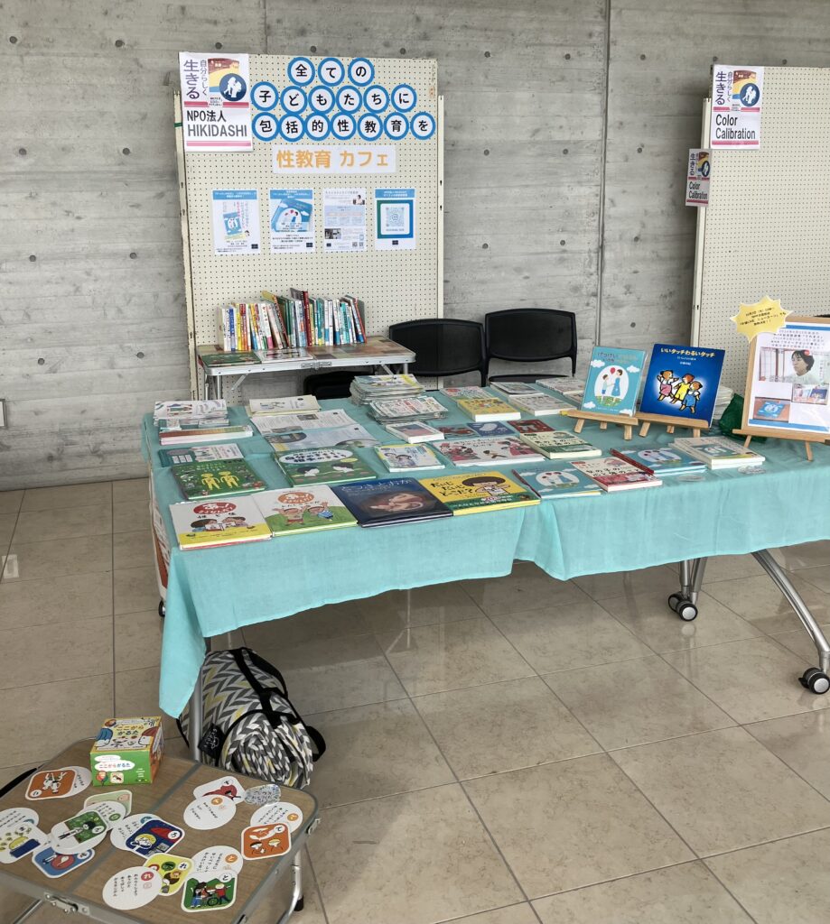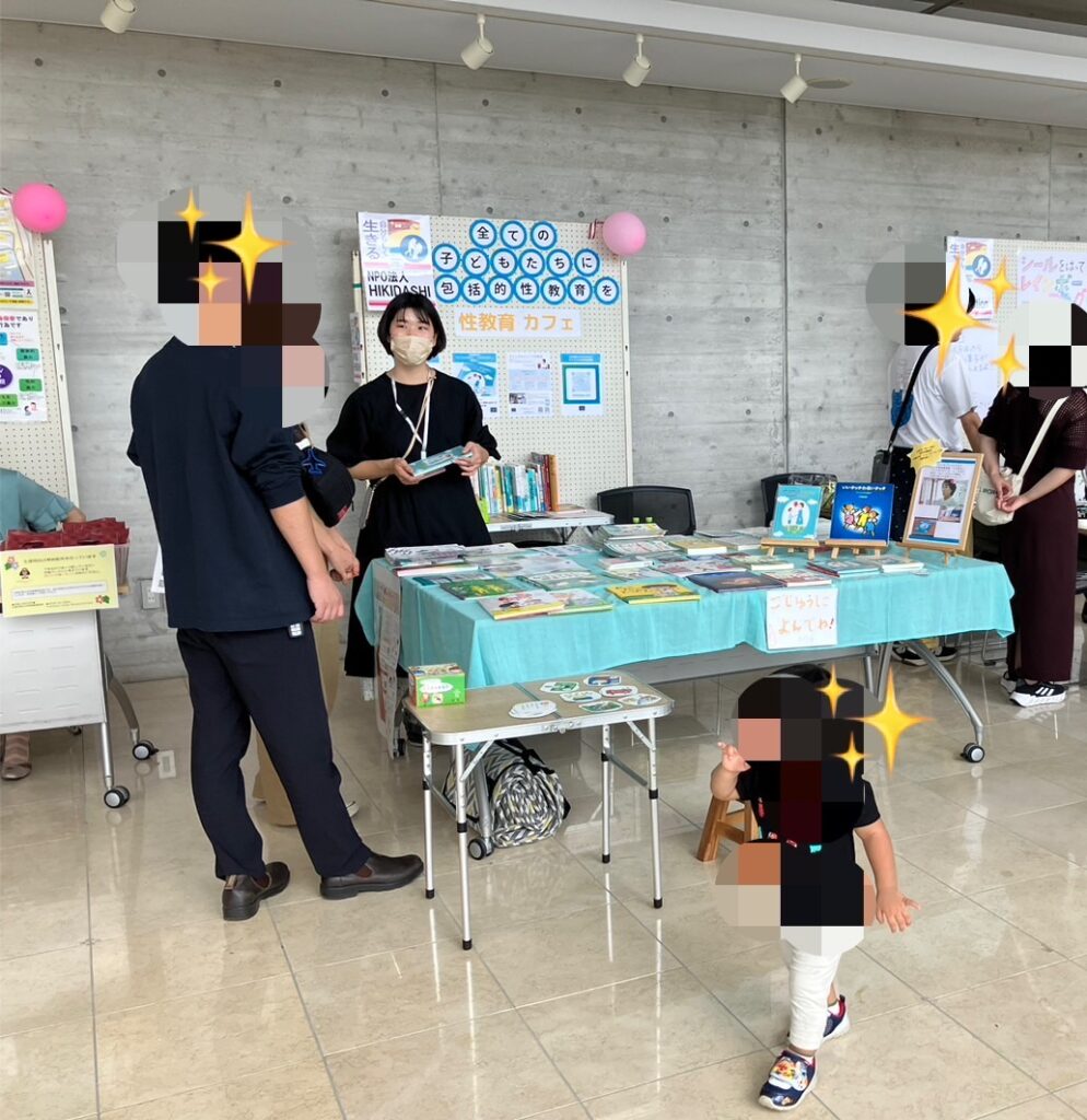 性教育に関する絵本や書籍の展示やリーフレットの配布、代表の著書「げっけいのはなし いのちのはなし」「『げっけいのはなし いのちのはなし』から広がる世界」の販売、絵本の読み聞かせや性教育を学べる「ここからかるた」の体験コーナーの設置、家庭での性教育の方法等、性に関する質問や相談への対応を行いました。