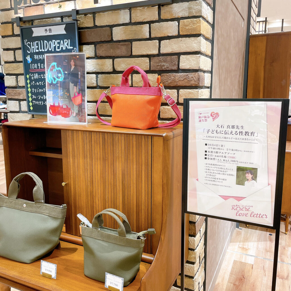 mitaina様の主力商品である神戸発のバッグ「ウイトート」のポップアップコーナーの一画での開催となりました。