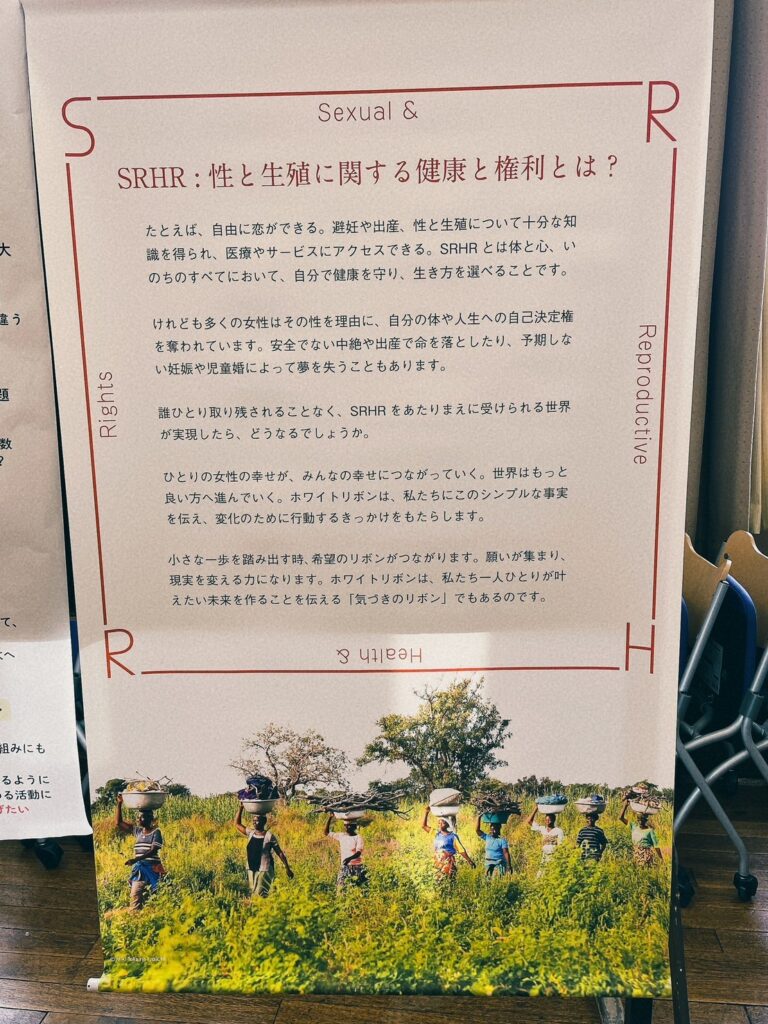 また、今回は公益財団法人ジョイセフさんにSRHR(リプロダクティブヘルス・ライツ=性と生殖に関する健康・権利)について書かれたタペストリーを貸していただきました。