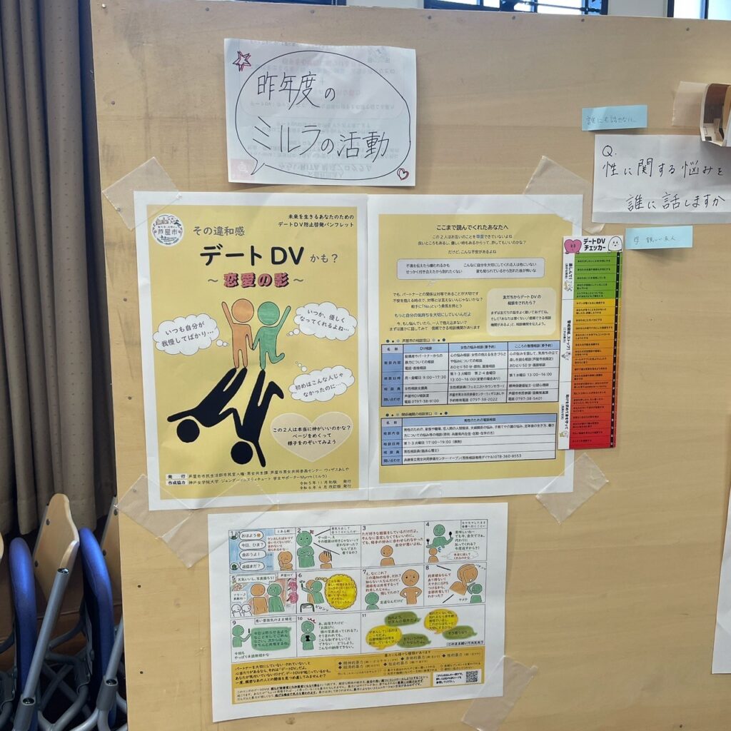 ミルラさんのデートDVの展示に合わせて、デートDVチェッカーの展示・配布も行いました。興味を持ってくださった方が多かったです。