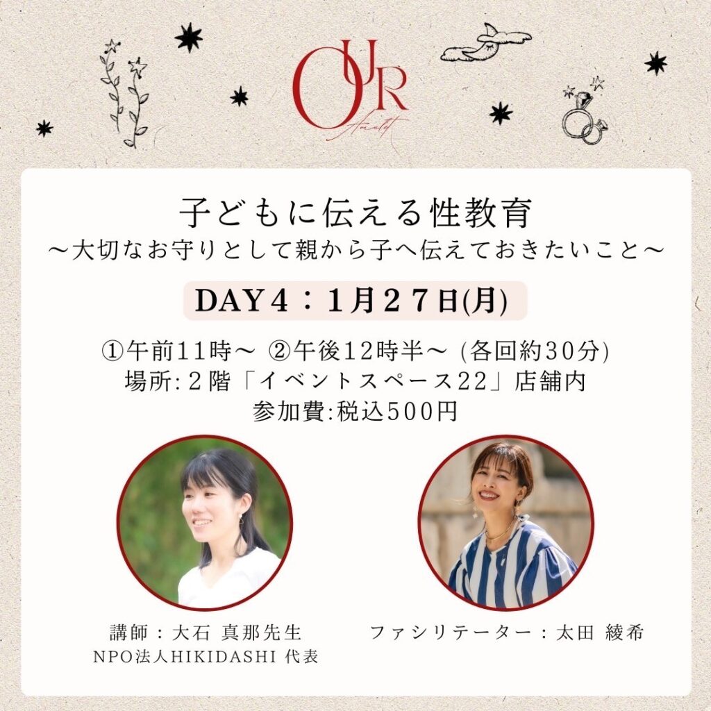 1/26(日)「乳幼児期から話そう おまもりになる性教育」