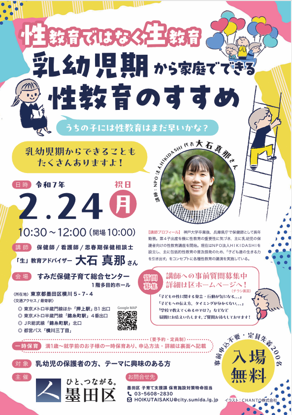 小さい頃からの家庭での性教育について、気軽なお話し会を開催していますので、ぜひお声かけください。