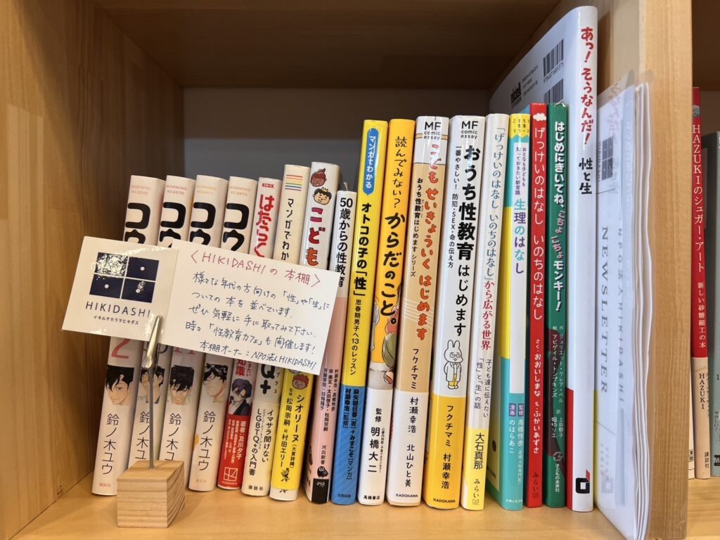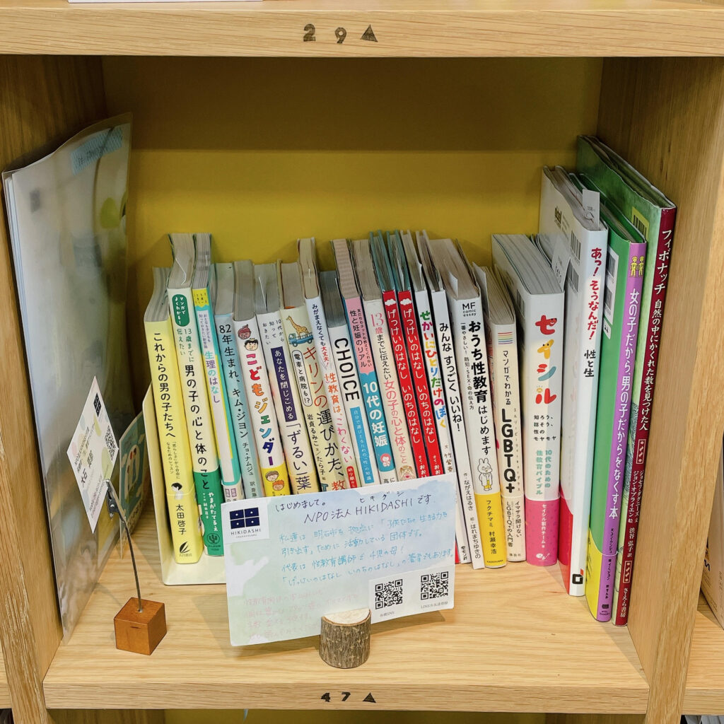 こちらでも5月から貸し本棚をお借りして性教育関係の書籍を並べています。