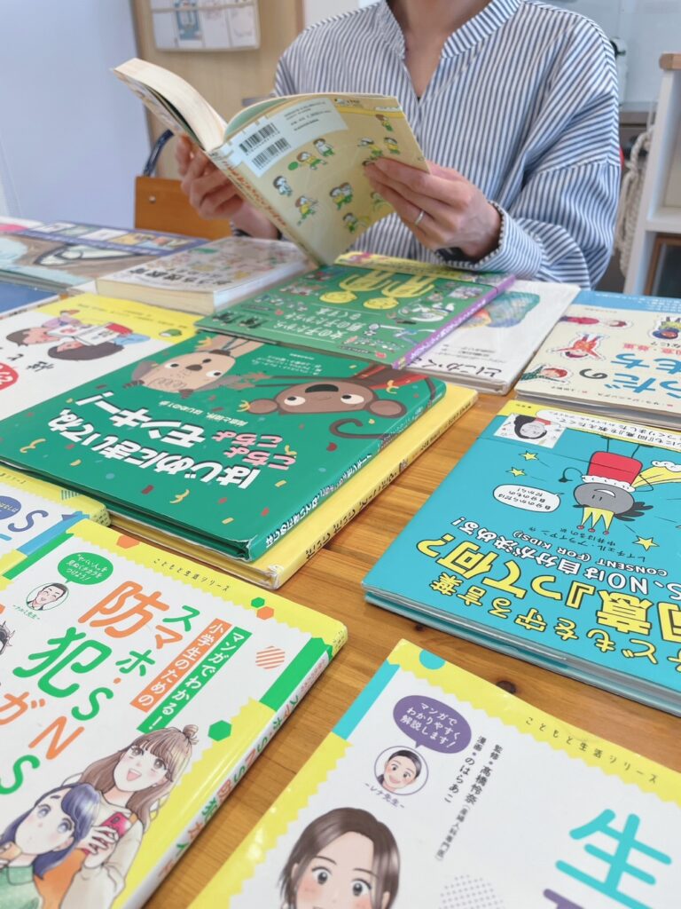オススメの性教育関連の書籍を並べて、図書室の開いている日はいつでも手に取ったり貸出できるようにしておきますので、