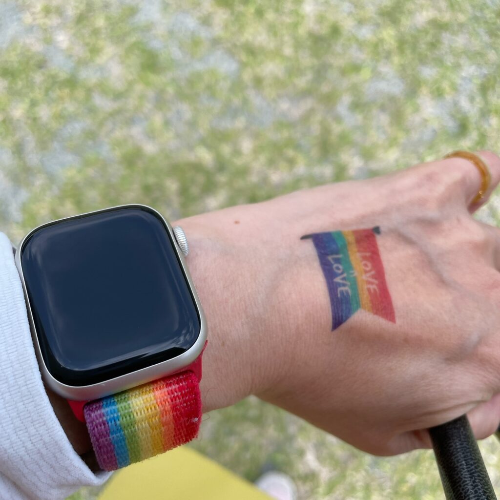 私も手にシールを貼ってもらったり、レインボーのものを身に付けて旗を振って参加しました。